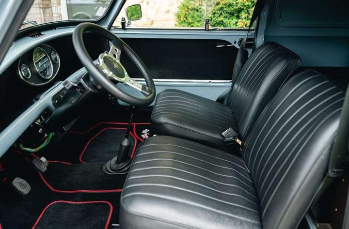 Under the hood, the original 1000cc engine has been replaced by a 1275cc unit, from a Mini Cooper, now developing 65hp. This modification offers much better driving pleasure and a very pleasant ride. The gearbox has also been completely restored to adapt to this new engine.