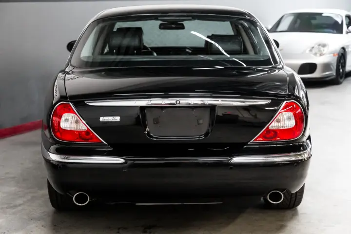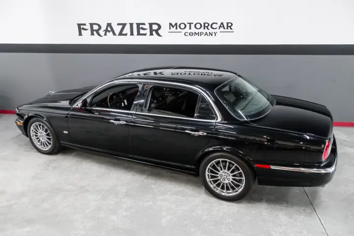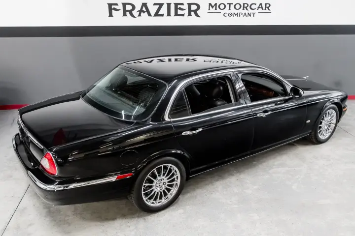 Now we move to topside of this well preserved Black on Black Vanden Plas example. The paint still looks like it did when pulled from the showroom in 2006 ! The interior wood trim is perfect ,the leather is soft and supple with no scuffs or scratches. The car is a non smoker car so it retains that wonderful Jaguar new car aroma.