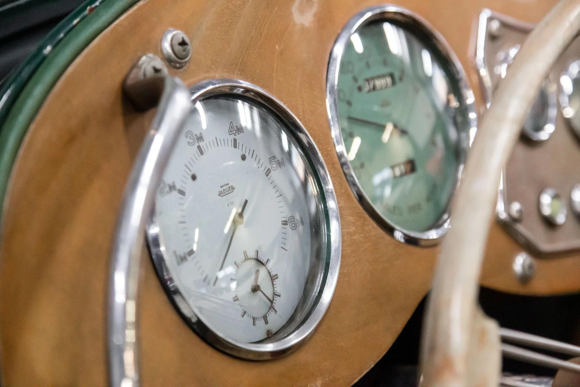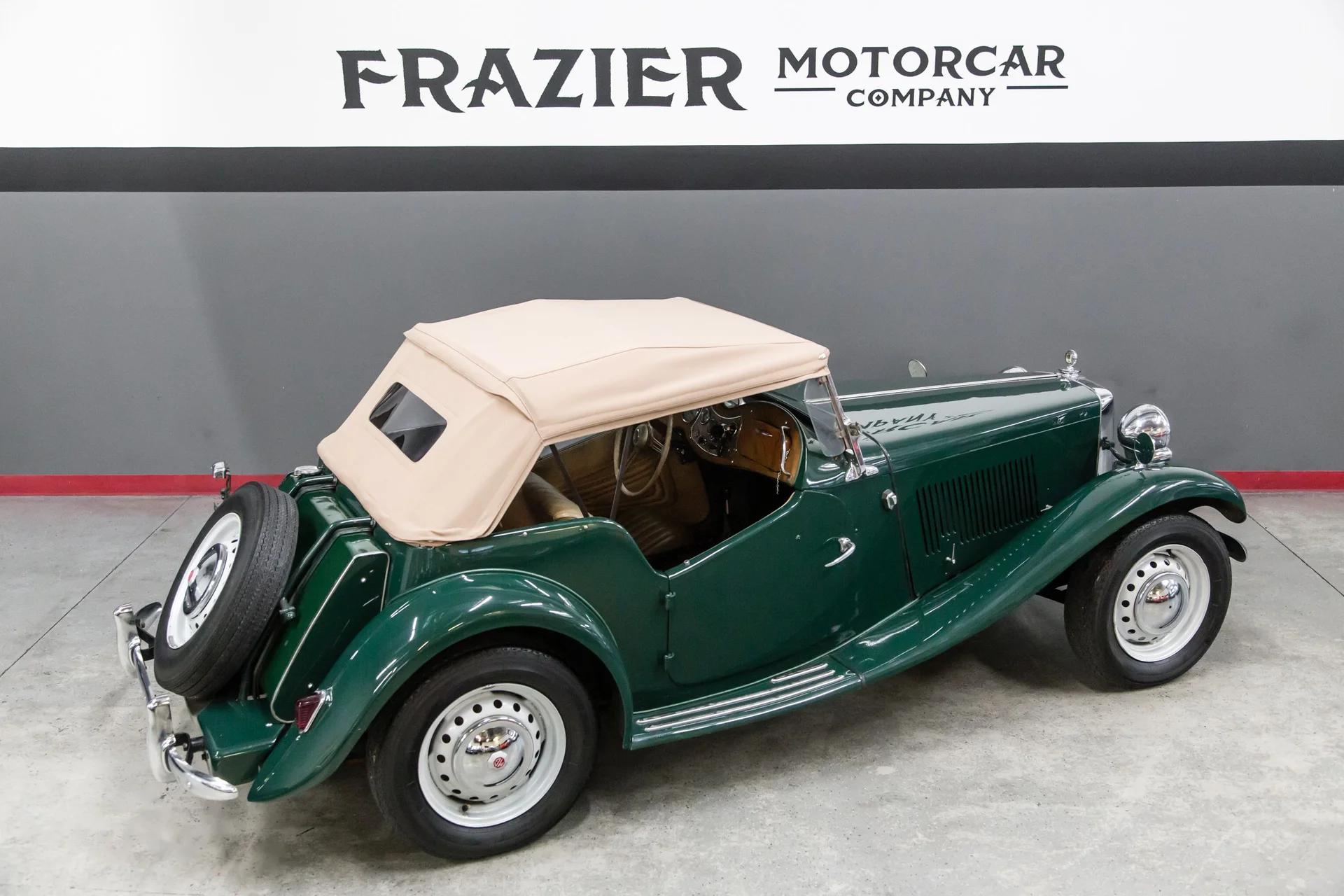 This attractive British Racing Green MG TD Roadster is the perfect cruising example. This MG has straight, solid fender wings, nice body gaps, and straight panels. The car is solid mechanically, with a quick and easy start each time. The transmission has recently been rebuilt, is quiet, and operates as designed. The paint and chrome on the car are good, with a nice interior and tonneau cover. The vehicle has a brand-new soft top, a new windshield, and newly installed seatbelts. The car has a nice drive with recent brake work and a tight front end.