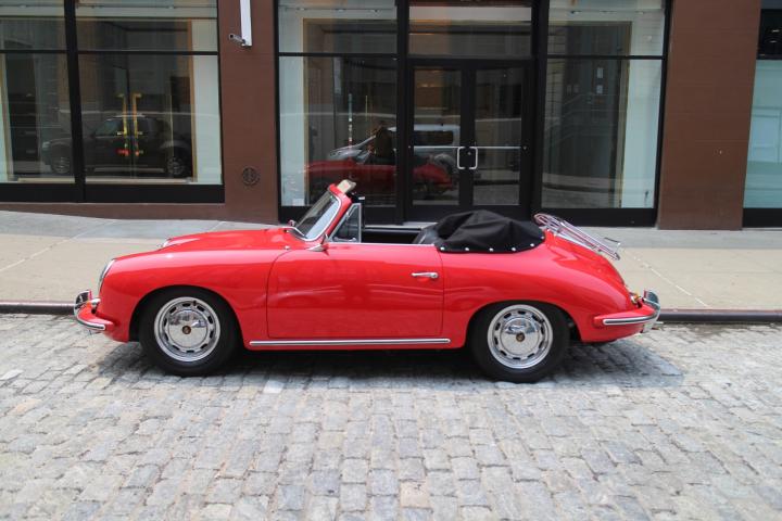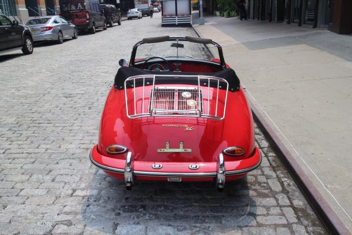 Every once in a while, we get a car that excels in all categories, from an exceptional restoration, to incredible drivability, and exceptional documentation. We are proud to present the nicest 356SC Cabriolet that has come through our doors in a very long time. This car benefitted from an extensive, in depth $155K restoration performed by marque specialists Club Sport Racing in Florida, which is documented with each and every invoice for the process. The car was stripped to bare metal and repainted in its factory Red, and the interior was completely reupholstered with new correct materials. The interior presents as new and all the gauges work, including the clock. This is a matching numbers and colors car including both its Certificate of Authenticity and Kardex. This 356SC has perfect panel gaps, and the paint maintains a glass-like mirror finish all around. The black soft top is new and in excellent condition, with a matching black boot cover. The car benefits from a modern day, vintage style radio providing modern connectivity such as auxiliary, USB and iPhone inputs, as well as Bluetooth, while maintaining a period correct appearance. The speakers have also been updated including the addition of a removable set of speakers, providing great sound without requiring intrusive work, allowing the vehicle to quickly and easily be returned to its original form if desired. . The car has driven less than 3500 miles since the restoration and was recently serviced in 2020 including a brake service and a carb tune up. This European spec 356SC starts up with ease and is a joy to drive, thanks to the matching numbers transmission and engine which were both rebuilt during the restoration in 2013-2016. The engine bay is highly detailed with all correct decals and stickers. The underside is so clean you could eat off of it, and the car has absolutely no rust anywhere. We recently re-acquired this 356SC after selling it to a fastidious 356 Collector owner after multiple years of ownership and care. This owner put about 2500 miles on the car, and had the original carburetors rebuilt by the famed 356 Carburetor Rescue, which recently announced the closing of their business. These rebuilt carburetors come in a box with the car, and the set currently installed on the car is in perfect tune. This 356SC is ready to be enjoyed by its new owner and includes Restoration Records, Period Service Records, Tool Kit + Jack, Manuals, Spare Wheel, Top Cover, and service manuals.