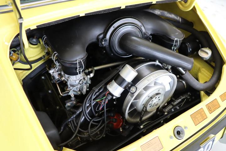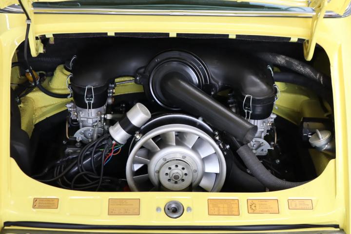 A sight to behold, as the beautiful paintwork of this 911 is barely dry and is finished in the colour “Light Yellow” (colour code 6262). The targa roof is the most sought-after version, thanks to the possibility of open-top driving without disturbing the car's beautiful roofline. Of course, the beautiful Fuchs rims are a must. This model still features the distinctive gold brand and type designation on the car. The windows are lightly tinted, which gives a more attractive look and reduces the amount of sunlight entering the car. Thanks to the restoration, the car is in very good visual condition. The paintwork, rubbers, windows, lighting and chromework are all in pristine condition.