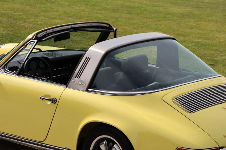 Een plaatje om te zien, want het prachtige lakwerk van deze 911 is nog maar amper droog en is uitgevoerd in de kleur 'Light Yellow' (kleurcode 6262). Het targadak is de meest begeerde uitvoering, dankzij de mogelijkheid van open rijden zonder de prachtige daklijn van de auto te verstoren. Natuurlijk mogen de prachtige Fuchs velgen niet ontbreken. Dit model is nog uitgevoerd met de kenmerkende gouden merk- en typeaanduiding op de auto. De ramen zijn licht getint, wat zorgt voor een mooiere look en minder zonnestralen in de auto. Dankzij de restauratie is de optische staat zeer goed. Zowel het lakwerk als rubbers, ruiten, verlichting en het chroomwerk verkeren allen in een frisse staat.