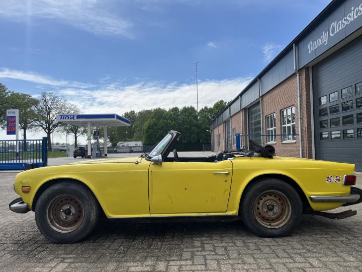 Our Triumph TR6 is sold with a Texas salvage vehicle title and a Dutch customs document. EU import duties have been paid, and the car will be sold with a commercial invoice. We offer door-to-door delivery throughout Europe—contact us for a shipping quote.