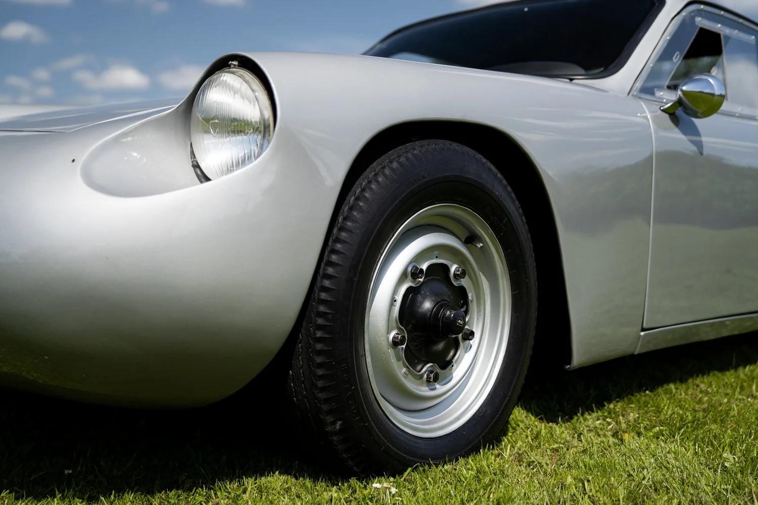 In 1963 Aldo Borghi received a Porsche 356 from a customer for restoration. This Porsche 356 was produced in 1953 as a 1954 model year with a 1.500 ccm type 546 engine producing 55 PS. After suffered a fire the car was completely destroyed. The restoration was practically impossible, but the mechanics and its running gear were still of interest to the Italo-Argentinean coachbuilder.
