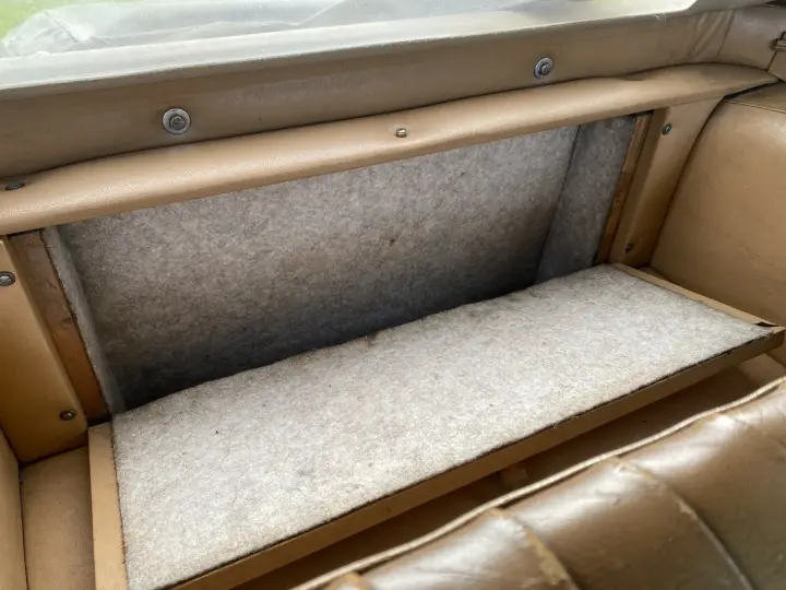 To keep you safe from the Belgian weather it comes with it's full softtop and sidescreens and a full tonneau cover. All original and in good shape.