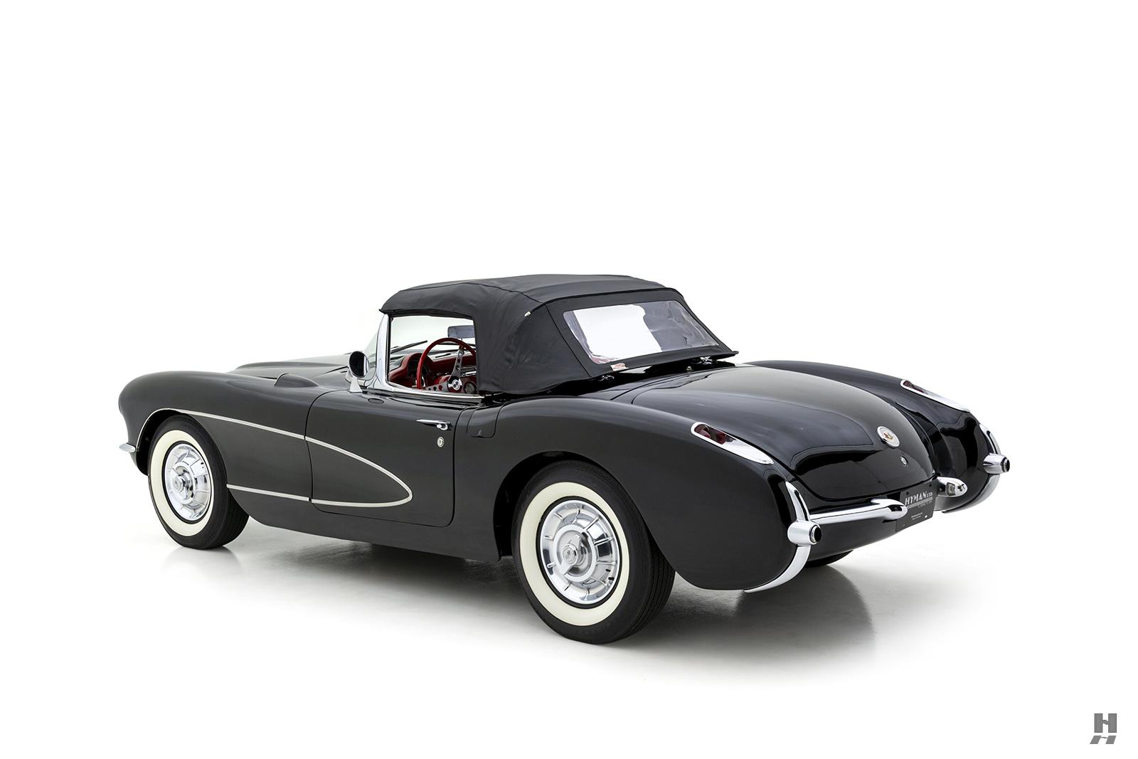 Attractively presented in black with black coves, with a black top over red upholstery, this 1956 Corvette is offered from the care of an extensive private collection, where it has been well maintained by the owner’s in-house mechanical staff and enjoyed with gusto on rallies and tours. It is ideal for continued enjoyment in the same manner, while being attractively finished and detailed, and it benefits from select updates to improve performance and drivability.