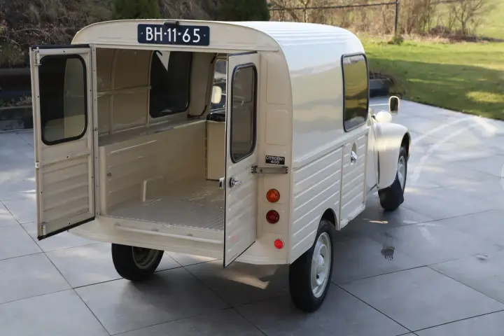 De Citroën 2CV. Vooral bekend als de 'Eend' of 'Lelijk Eendje'. Dit iconische Franse model werd in 1935 gecreëerd met de Franse boeren als doelgroep. Hij moest daarom betaalbaar en betrouwbaar zijn. Ook moest hij comfortabel en veilig goederen kunnen vervoeren over de onverharde wegen, aardappelen, eieren en wijn. Een eis was dat eieren in een mand niet zouden breken wanneer de auto over een stuk omgeploegd land zou rijden, en dit presteerde dit auto. Oorspronkelijk was het plan om in 1939 de 'Deux Chevaux' te presenteren op de Parijse autosalon, maar vanwege de oorlog heeft dit pas plaatsgevonden in 1948. De productie liep uitzonderlijk lang: van 1949 tot en met 1990. Ondanks het grote succes en hoge productiecijfers is een goed en roestvrij exemplaar tegenwoordig steeds schaarser. De bestelbus-uitvoering (Fourgonnette) staat bekend als besteleend en werd geproduceerd vanaf 1951, waarbij de AK 400 werd geproduceerd vanaf 1970. De bestel-eend werd destijds ook gebruikt door de Nederlandse wegenwacht! Tegenwoordig zijn ze vooral gewild vanwege marketing- of campermogelijkheden.