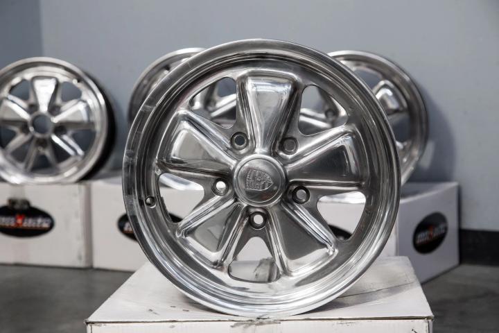 Complete set of four Fuchs Alloys from 1968-1973 Porsche 911 cars.The wheels are in excellent condition and ready to mount up for use.The wheels are true,cleaned and polished.6 x16
