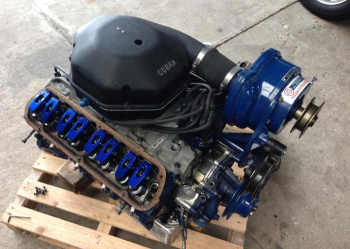 Very little used, 302 Ci with full alloy heads, Roller Rockers, Cobra inlet manifold, Cobra valve covers, Cobra deep alloy sump, HT leads and Disi. Blower belt and all pulleys and air cleaner housing, fuel pump, it came from an Original 289 Cobra which had this engine removed and the original engine refitted.