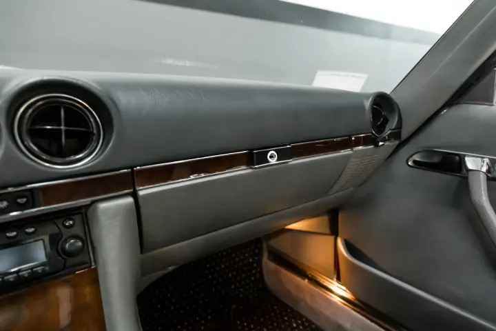 ONE would be hard pressed to find a cleaner, more crisp, sharp 107 SL than this example ! The car comes with its original window sticker, books ,manuals ,service tickets ,and tools. The car comes with both Hard top and soft top(soft top is as new).The soft top compartment still looks new. The paint is as perfect as I have witnessed in recent years. The tires are deep in tread, all bright work is crisp and clean without flaw. The gray leather seats still look new ,