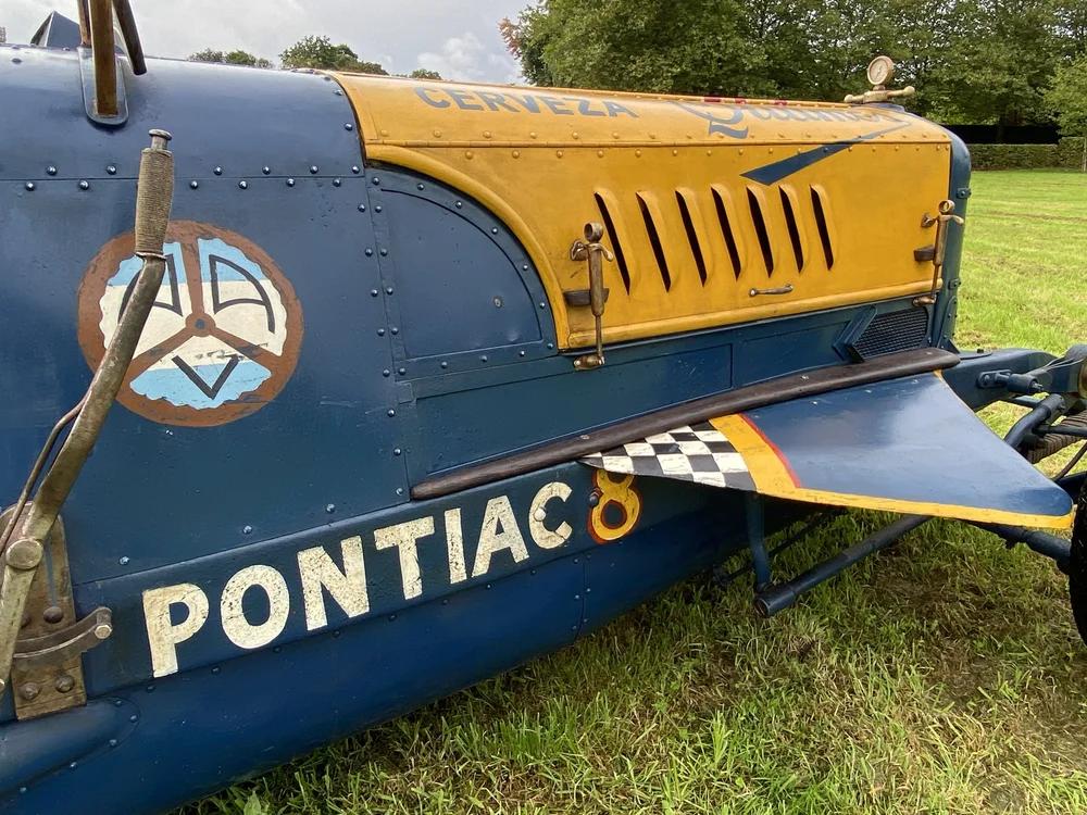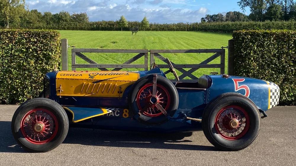 As the car is running quite fast due to all the modifications done, the brakes were modified for hydraulic brakes and foreseen of Alloy drums all around for better brake performance. As for the road handling, the leaf springs have been equipped with Hartford friction shocks in the front and rear. The 18-inch spoke wheels are fitted with BF Goodrich tires, and the car has been given an identical spare wheel. Other details contributing to the fantastic looks of the car are the leather tool bag on the driver's side, the brass finishing, the dark red leather interior, the little windscreen and its paintwork. A full tonneau cover is provided with the car to protect on rainy days.