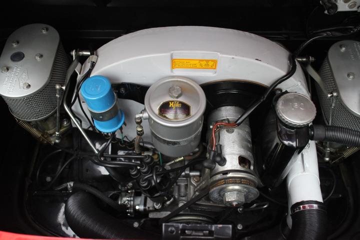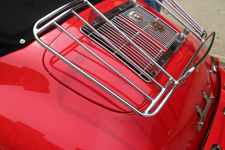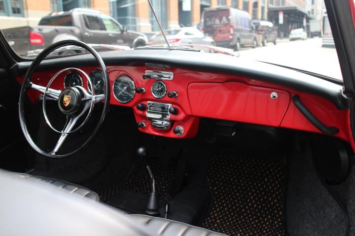 Every once in a while, we get a car that excels in all categories, from an exceptional restoration, to incredible drivability, and exceptional documentation. We are proud to present the nicest 356SC Cabriolet that has come through our doors in a very long time. This car benefitted from an extensive, in depth $155K restoration performed by marque specialists Club Sport Racing in Florida, which is documented with each and every invoice for the process. The car was stripped to bare metal and repainted in its factory Red, and the interior was completely reupholstered with new correct materials. The interior presents as new and all the gauges work, including the clock. This is a matching numbers and colors car including both its Certificate of Authenticity and Kardex. This 356SC has perfect panel gaps, and the paint maintains a glass-like mirror finish all around. The black soft top is new and in excellent condition, with a matching black boot cover. The car benefits from a modern day, vintage style radio providing modern connectivity such as auxiliary, USB and iPhone inputs, as well as Bluetooth, while maintaining a period correct appearance. The speakers have also been updated including the addition of a removable set of speakers, providing great sound without requiring intrusive work, allowing the vehicle to quickly and easily be returned to its original form if desired. . The car has driven less than 3500 miles since the restoration and was recently serviced in 2020 including a brake service and a carb tune up. This European spec 356SC starts up with ease and is a joy to drive, thanks to the matching numbers transmission and engine which were both rebuilt during the restoration in 2013-2016. The engine bay is highly detailed with all correct decals and stickers. The underside is so clean you could eat off of it, and the car has absolutely no rust anywhere. We recently re-acquired this 356SC after selling it to a fastidious 356 Collector owner after multiple years of ownership and care. This owner put about 2500 miles on the car, and had the original carburetors rebuilt by the famed 356 Carburetor Rescue, which recently announced the closing of their business. These rebuilt carburetors come in a box with the car, and the set currently installed on the car is in perfect tune. This 356SC is ready to be enjoyed by its new owner and includes Restoration Records, Period Service Records, Tool Kit + Jack, Manuals, Spare Wheel, Top Cover, and service manuals.