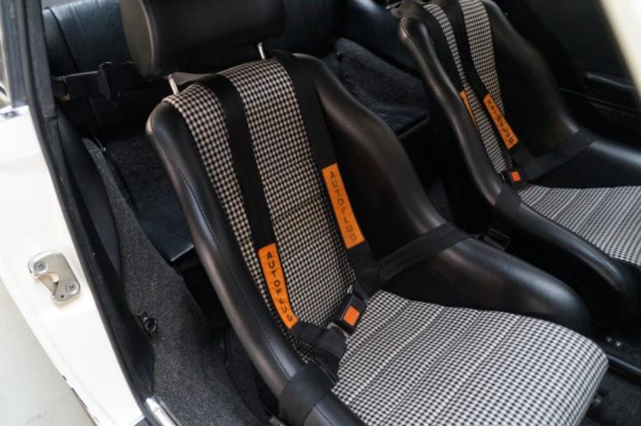 Period-correct Recaro racing seats with pepita inserts