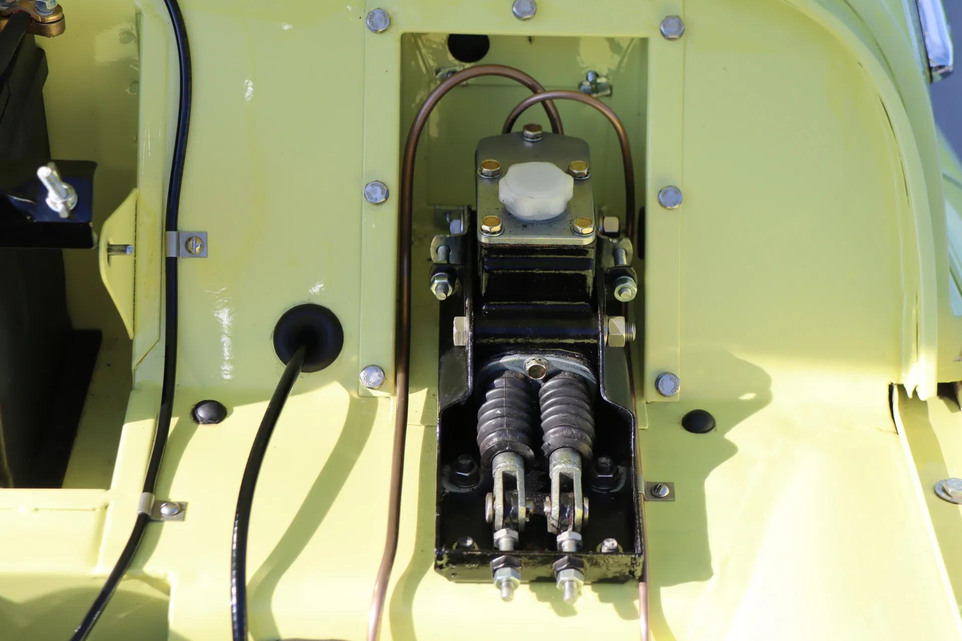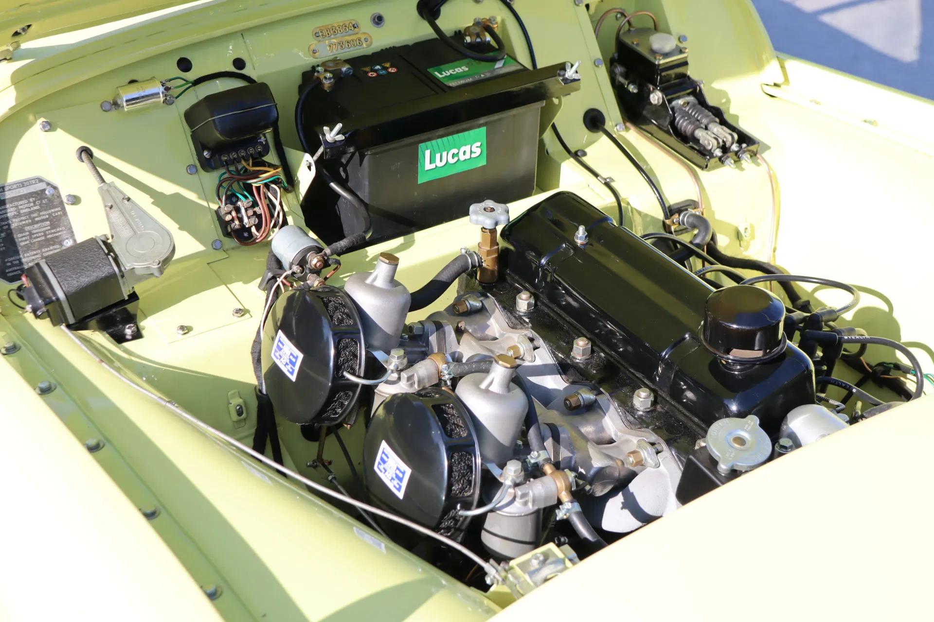 The car still has its original engine, which has been overhauled. The car has also been professionally restored, with attention to originality. The drum brakes have been retained, as has the Lockheed rear axle. This rear axle is fitted with Revington axle shafts, as the original Triumph axle shafts often break. The original steering system and bonnet locking system have also been retained. A mass switch has been fitted, hidden behind the dashboard. In addition, the Triumph is equipped with anti-theft and anti-self-ignition devices, an aluminium radiator (painted black), original A-type overdrive, a narrow modern V-belt, electric ignition and the authentic “high-torque” starter motor. The original DC dynamo has been converted to an AC dynamo.