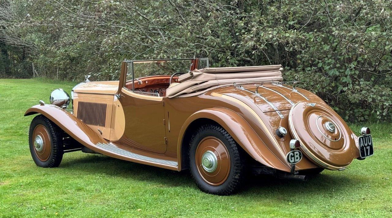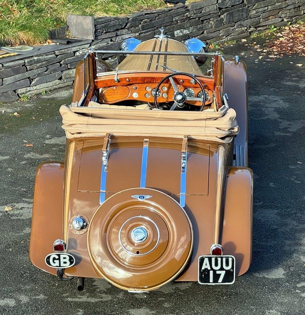 A very striking Derby Bentley which incorporates various unusual and very appealing design features. Sporty in appearance, sharp and lovely in condition and running very well. One of the very first Derby Bentleys built, originally bodied by Park Ward, the current Barker body was built for a slightly later 3½ Litre in 1935, but transferred to this car in the 1950s. The car features very sleek wing design, shallow windscreen, some very attractive body mouldings and swage lines to the scuttle and bonnet (which are also louvred), the rear quarters and the doors, too have sweeping, curved lines, enhanced by colour division. Early photos of the body when mounted on B178DG, although black & white, suggest a very similar colour scheme to that still on the car. These photos, together with shots of various documentation, an old logbook, etc, can be seen on the 'More Photos' page. The paintwork, chrome plating, upholstery, woodwork and cosmetics generally are all excellent, and the fitment of a full set of 'Ace' wheel discs and a 'clam shell' spare wheel cover, correct P100 headlights,the facility for mounting luggage on the lid of the already quite spacious boot, all add to the car's practicality. Excellent, probably unique and a very rare opportunity to acquire such a special specimen. The car has a recent aluminium cylinder head and we have just fitted five new tyres and heavy duty tubes. Serviced, prepared and offered newly MoT tested.