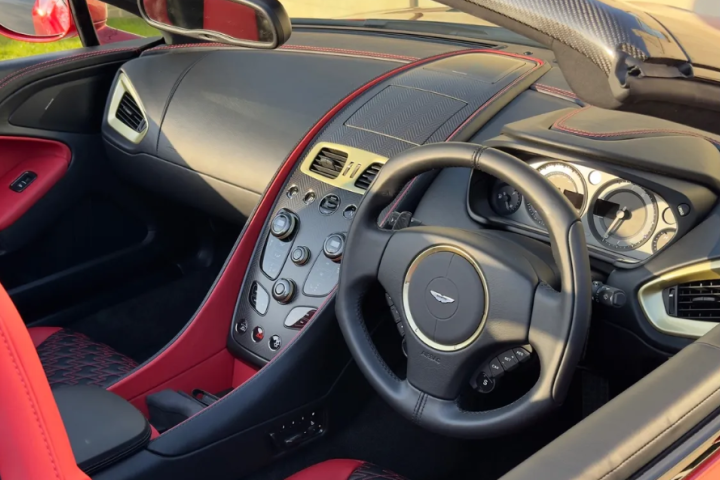The car is powered by Aston Martin's renowned 5.9L V12 engine, producing 592 horsepower, ensuring thrilling performance. Paired with the third-generation Touchtronic, eight-speed, paddle-shift transmission, it offers a driving experience like no other, with power directed to the rear wheels for ultimate driving precision.