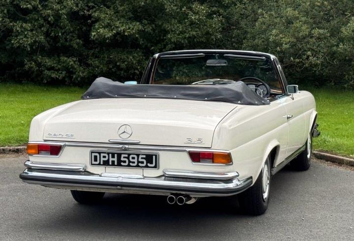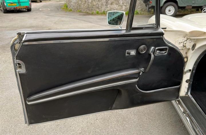 A lovely example of a very rare, 3.5 litre V8. As we understand it, only 68 were built in right-hand drive, and consequently very hard to find! The car is very nicely finished in soft white with original black leather interior and black hood, and is in lovely condition. The car has been with one family (father and daughter) since 1978, and quite possibly since new. We are investigating this further. Well maintained, with a good deal of history in the file, including many invoices, a run of MoT certificates, original handbook and service book, etc, etc. In the late 1980s, the car was stripped to bare metal and completely repainted to a high standard in the original shade of white, and still lovely to this day. Offered serviced and MoT tested.