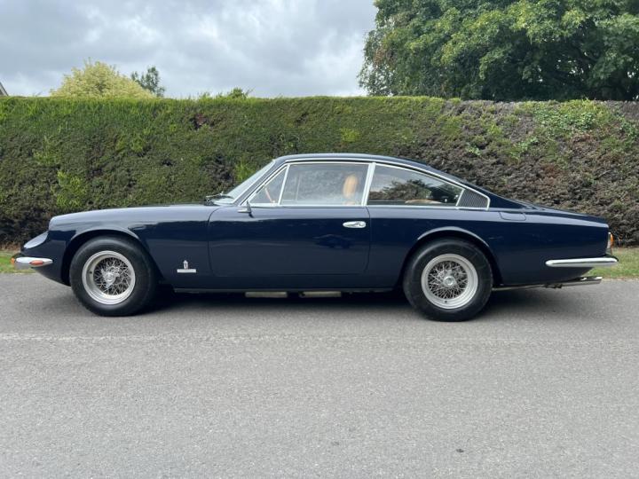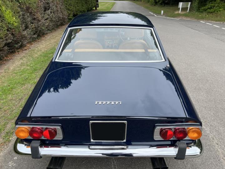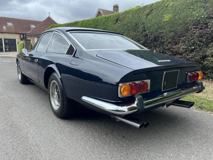 The five-glass cabin profile was longer than that of its predecessor, the 330 GT 2+2, with a longer and shallower slope to the rear screen, which ran into a virtually flat boot lid terminating in an angular Kamm tail.