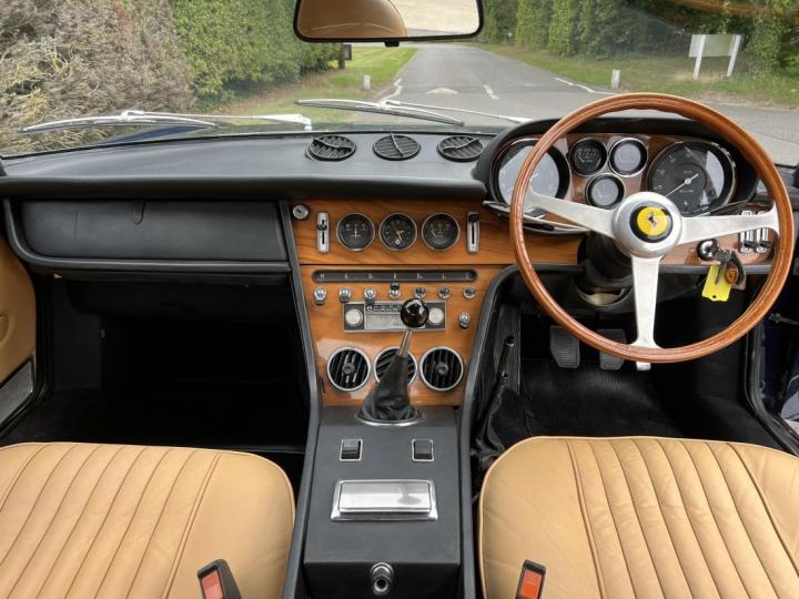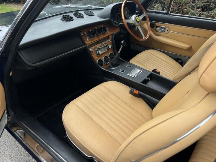 Upon completion, the car was collected from the factory by its first owner, Mr I.H., on Italian export plates (EE number plates). The UK price at the time was £8,748.10s.4d plus delivery, number plates, and road tax—the same price as a new 365 GTB/4 “Daytona.” It was one of just 52 examples officially imported by Maranello Concessionaires, of which only 25 are known to survive taxed or SORN’d.
