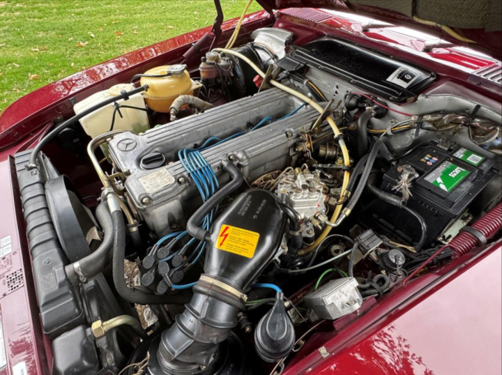 This beautiful Mercedes 280SL is just out of a virtual 15 year hibernation, during which time it has only been allowed out for its annual servicing and MOT inspections. It would appear from the 32 MOT certificates chronologically filed in the car's history file, that this lovely car has never failed an MOT test. It has had only one driver from when it was new in January 1985 and was initially registered to Arthur Anderson and Company in London as a director's company car. Subsequently registered to the 2nd owner on his retirement from Arthur Anderson in 1992 with an approximate recorded mileage at the time of 17,500. Since then it has been very sparingly used due to the diminished health of the owner who has now sadly passed away. From day one, the car has always been garaged and was supplied by Hughes of Beaconsfield who carried out all of the servicing up until 1992 and has since been looked by two well qualified local garages, the invoices for which are retained in the car file. Hence this car has been very well mechanically maintained and both the bodywork and interior have been extremely well kept and only very minor improvements are now required to make it perfect for what is now a 40 year old motor car. Recently serviced and fitted with a new set of tyres, it is now ready to be enjoyed by the next fortunate owner and realistically priced at £29,950