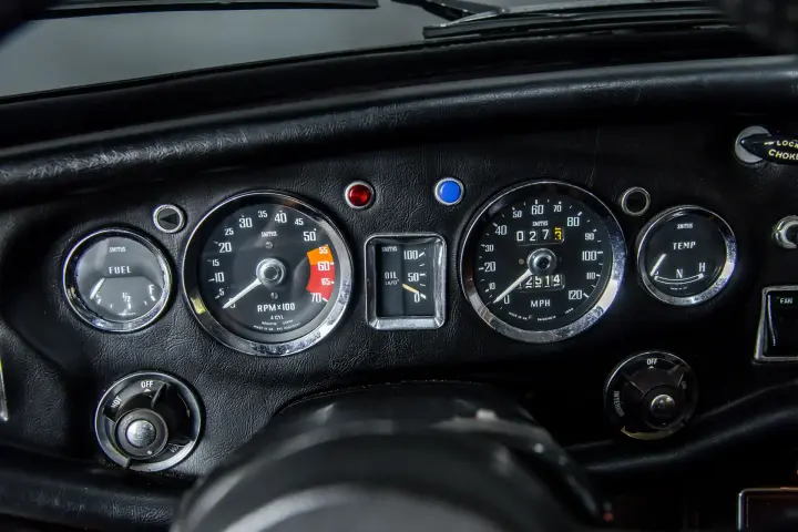 The car is as straight as the pictures reflect with razor straight body panels and perfect body panel gaps. The paint is as new, the chrome is brilliant and in excellent condition. The interior is without flaw with a crack free dash a, nice headliner and carpets. Gauges are crisp and sharp ,they work as designed. The door cards and seat covers are in excellent condition as the pictures reflect.