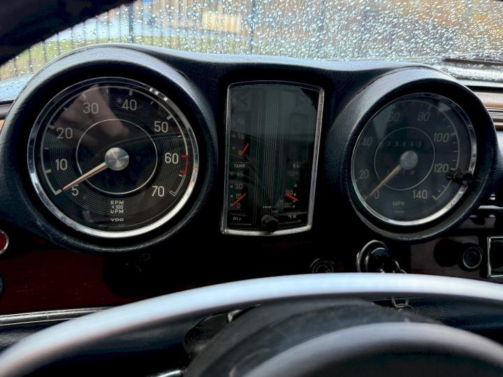 Het betreft een Matching nummers Lage grille (Flachkühler) 280SE Coupe, alleen geproduceerd in 1970/71, af fabriek geleverd in lichtblauw metallic 906G en in het verleden gewijzigd in Donkerblauw metallic 387H, het lakwerk is redelijk en hoeft niet vervangen te worden, een auto die goed loopt en rijdt, betreft een automatic transmissie met de handle op de tunnel en niet aan de het stuur, het leder interieur is best vrij aardig, zo ook tapijt en binnen hemel, voorzien van de originele Becker radio, qua body in zoverre ik kan zien geen schade gehad in het verleden, voorzien van het juiste type bumpers, de kofferbodem hoeken zijn in het verleden vervangen, de hoofd kofferbodem, achter tussen-paneel en achter schermen zijn nog de eerste en origineel, aan de onderzijde kan ie wat verbeteringen gebruiken, niet zo zeer de hoofdbodem delen, te denken is dan aan de voorste krik steunen, links voor de binnen scherm versteviging (banaan genoemd), en l + R een liggend gedeelte net voor het achterwiel.