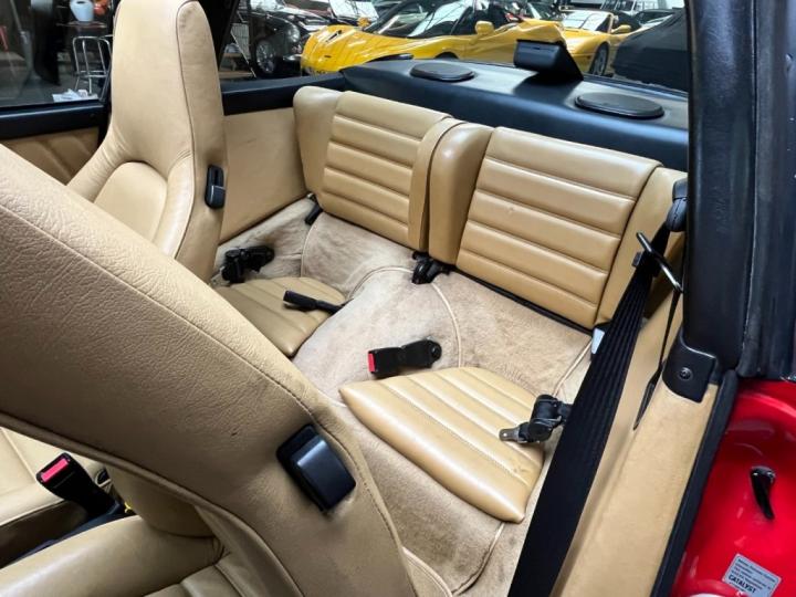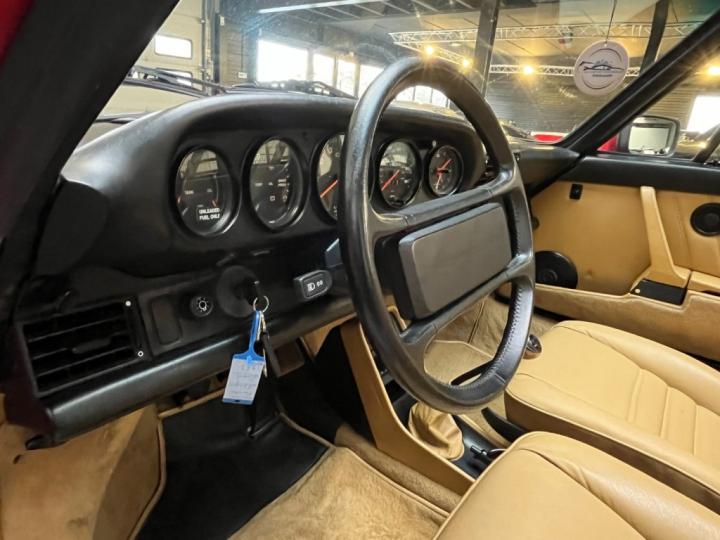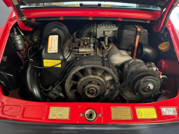 Finished in Guards Red over original tan leather interior, this is the classic configuration most enthusiasts want. The colour combination is timeless and suits the G-series shape perfectly. The car presents very well: clean body lines, good panel alignment, and no visible rust on the body or underside. At some point in its life it has been repainted — which is completely normal for a car of this age — and it shows nicely. The Targa roof is in good condition and fits properly.