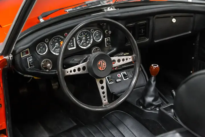 The paint is as nice as reflected in the picture presentation .The chrome bright work is nice, crisp ,and straight. Tires are deep in tread. The car has a new soft top. Seats are full and without any splits or tears ,carpets are good, door cards are good.