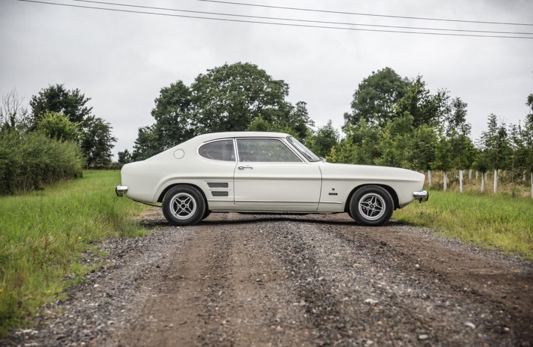 The Ford Capri Mk1 1600 offered here at Autostorico is a genuine 2 owner car from new and has covered a mere 54,396 miles. First registered in August 1970 to Mrs Plastow of Cuddington in Buckinghamshire. Finished in White with an immaculate Brown interior. Having recently undergone a full mechanical inspection and service this stunning example has also had a new set of tyres fitted to its RS style wheels. The original wheels still accompany the car.